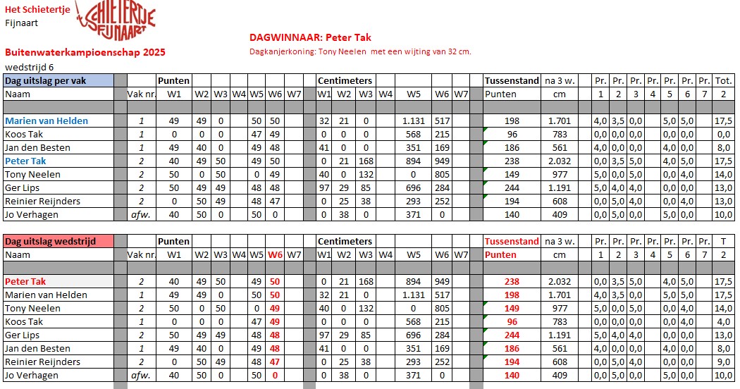 Onderstaande foto, winnaar Peter Tak 6e Buitenwaterwedstrijd.