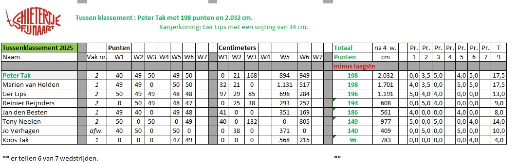 was Marien van Helden met Koos Tak als 2e. In vak 2 werd Peter Tak eerste met Tony Neelen als 2e.