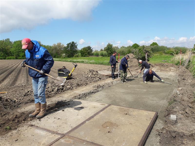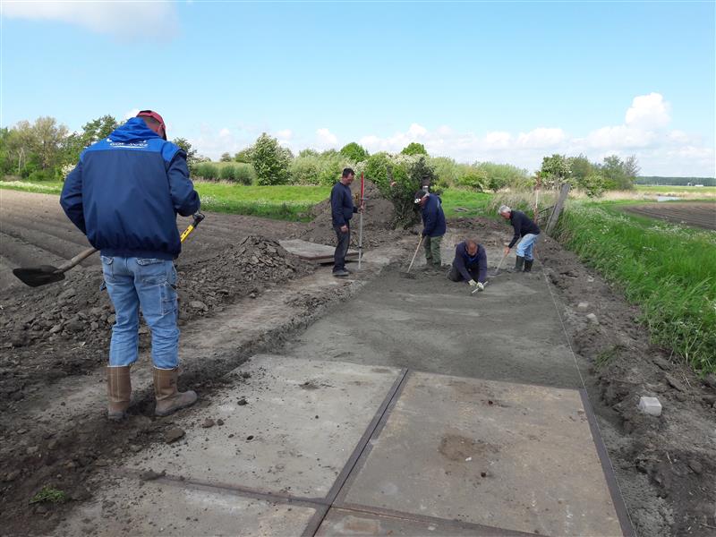 Het toegangspad naar het clubviswater Fort Sabina Henrica van hengelsportvereniging Het Schietertje uit Fijnaart is aanzienlijk verbeterd sinds zaterdag 2 mei 2020. Onder leiding van Rien Nuiten werden 's morgen in de stromende regen de platen aangeleverd. Met verdere hulp van Adrie Roks, Martin Kannekens, Peter Tak werden de platen gelegd, nadat er een stevige ondergrond met zand was gelegd. De leden zullen hier zeker erg blij mee zijn, daar het bij regen toch altijd wat slibberig was.